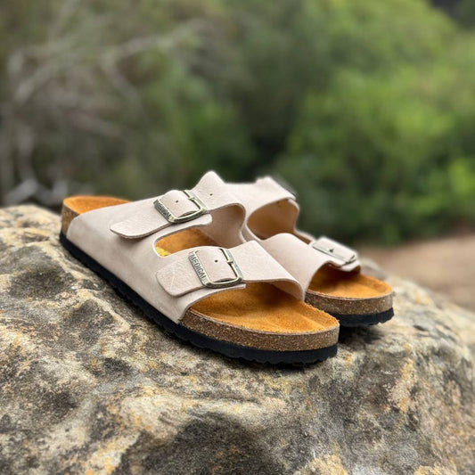 Two-Strap Suede Sandals Beige